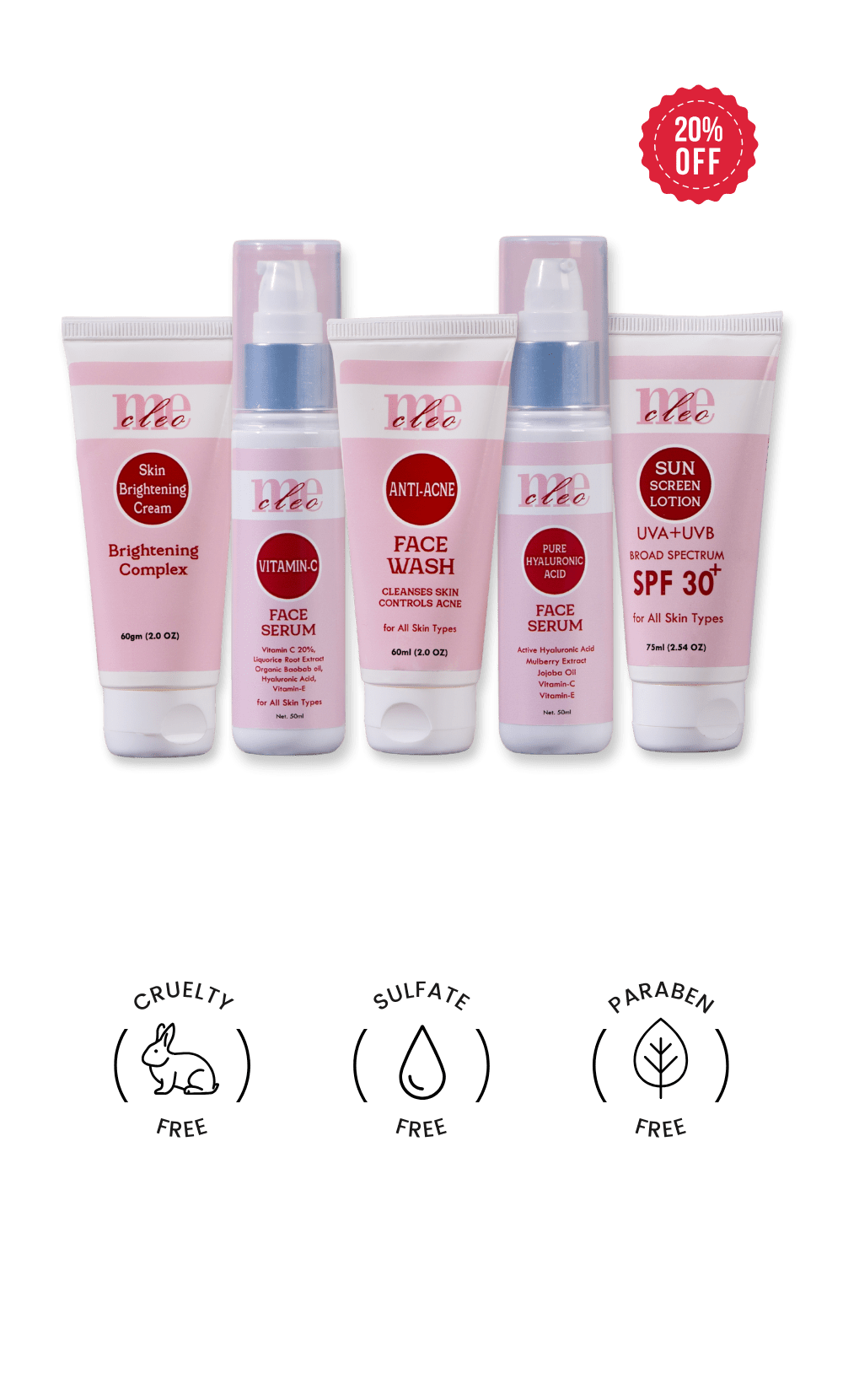 Combo 5 (Skin Brightening Cream + Pure Hyaluronic Face Serum + Vitamin-C Face Serum + Face Wash + Sunscreen Lotion) 20% OFF